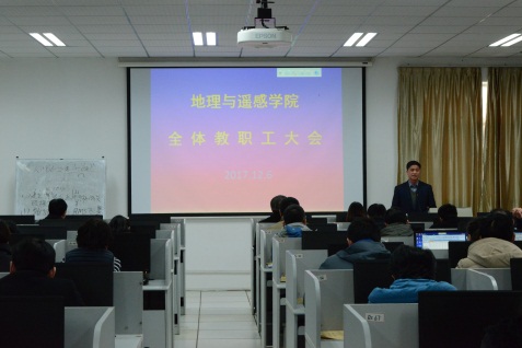 根据《南京信息工程大学机构改革与调整方案》的通知,地理与遥感学院拆分为遥感与测绘工程学院、地理科学学院,2017年12月6日,地理与遥感学院在北辰楼429召开分院全体大会。院领导高志球、梁成、成芳、沈润平、祝善友、高盛蔷、涂皛星出席了大会。大会由地理科学学院梁成书记主持。