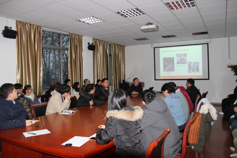 报告会上,王金岭副教授首先从理想中的自动驾驶开始,讲述了目前已落地的自动驾驶产品和自动驾驶的基本原理和实现过程,随后,他从自动驾驶安全性方向出发,指出了自动驾驶在危险发生概率上的短板,而后介绍了国际上在此方面做的研究成果。最后,他从SLAM(Simultaneous Localization and Mapping)技术和PPP(Precise Point Positioning)方面对于完整性监测做了案例解释,尤其对于SLAM技术解释为测绘专业中的控制网的观点引起师生们共鸣,也为我院测绘专业学生未来发展拓宽新的视野。